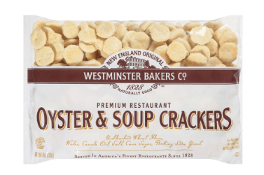 point. They also have vegan and reduced sodium options. And to go with that, oyster crackers! They simply taste better to me than traditional saltines, especially the Westminster Bakers Co. ones, and are in perfect, bite-sized pieces so there are minimal crumbs. Because no one wants to sleep in their cracker dust!