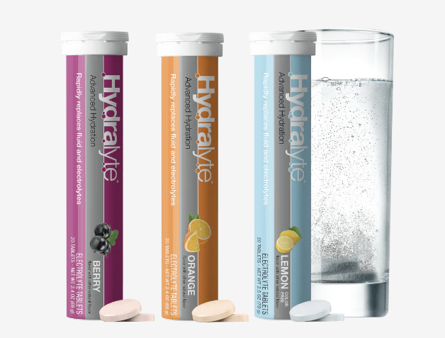 Powerade, or Hydralyte tablets. Sometimes the Powerade is easier to grab at the stores